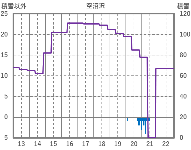 | 日 | 時 | 気温 | 降水 | 風向/風速 | 日照 | 積雪 | 降雪 |