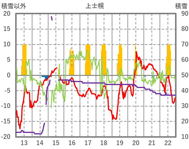 | 日 | 時 | 気温 | 降水 | 風向/風速 | 日照 | 積雪 | 降雪 |