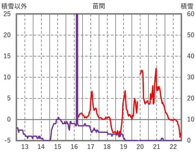 | 日 | 時 | 気温 | 降水 | 風向/風速 | 日照 | 積雪 | 降雪 |