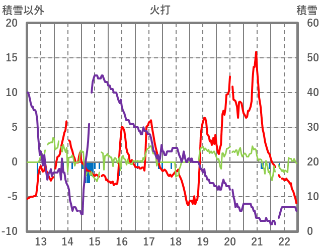 | 日 | 時 | 気温 | 降水 | 風向/風速 | 日照 | 積雪 | 降雪 |