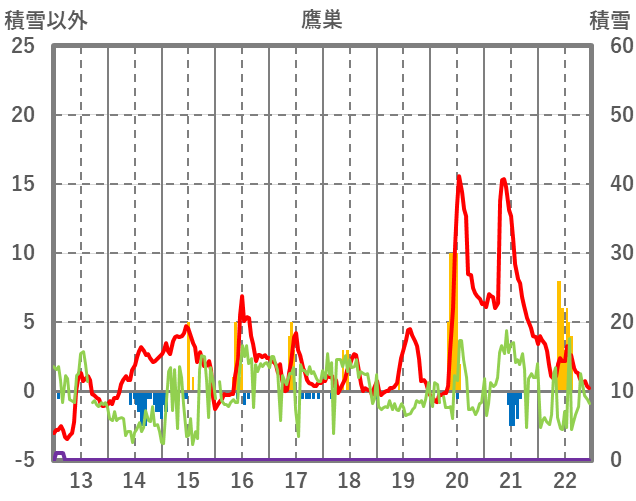 | 日 | 時 | 気温 | 降水 | 風向/風速 | 日照 | 積雪 | 降雪 |