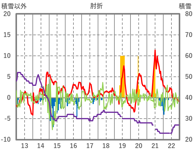 | 日 | 時 | 気温 | 降水 | 風向/風速 | 日照 | 積雪 | 降雪 |