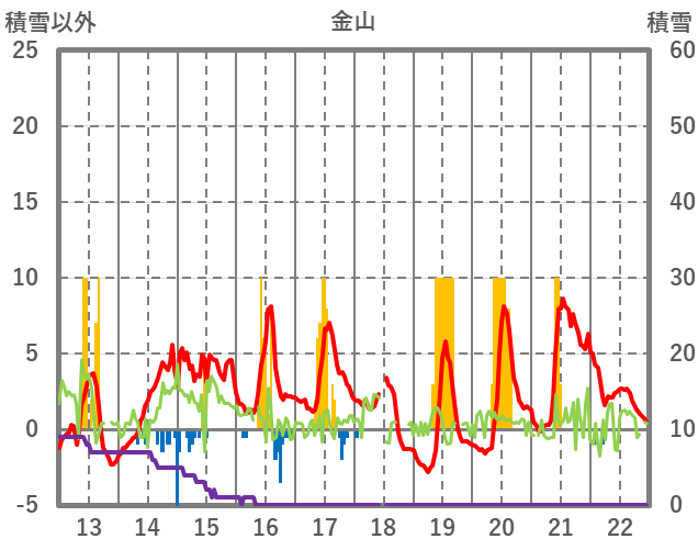 | 日 | 時 | 気温 | 降水 | 風向/風速 | 日照 | 積雪 | 降雪 |