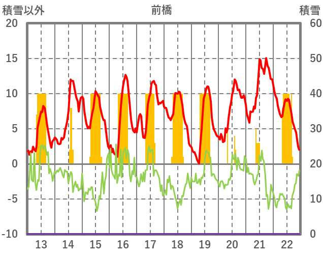| 日 | 時 | 気温 | 降水 | 風向/風速 | 日照 | 積雪 | 降雪 |