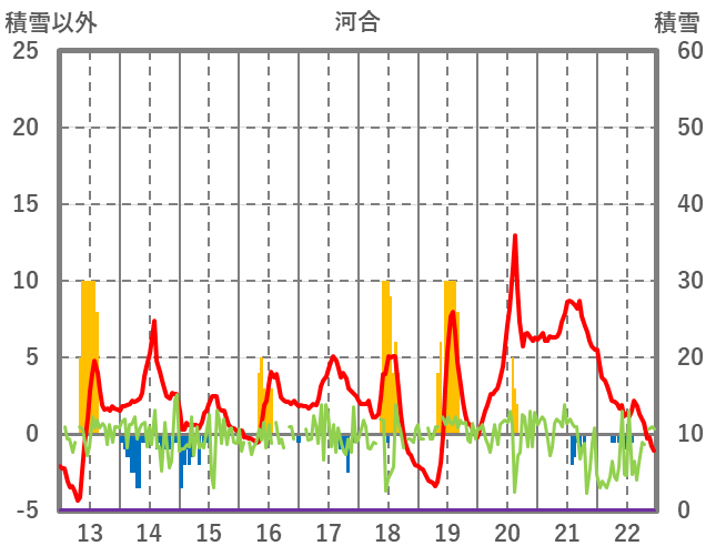 | 日 | 時 | 気温 | 降水 | 風向/風速 | 日照 | 積雪 | 降雪 |
