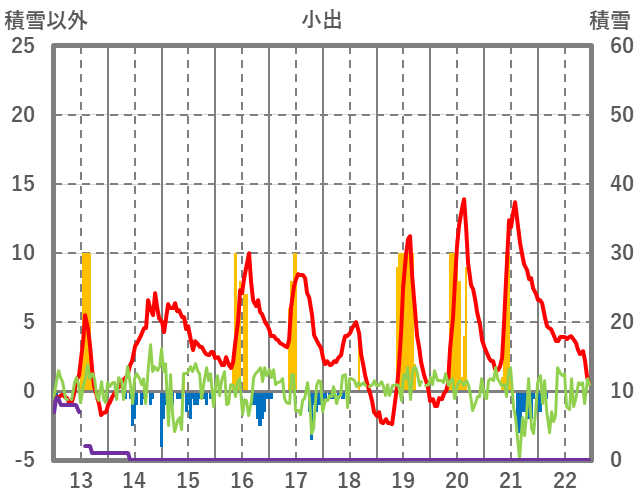 | 日 | 時 | 気温 | 降水 | 風向/風速 | 日照 | 積雪 | 降雪 |