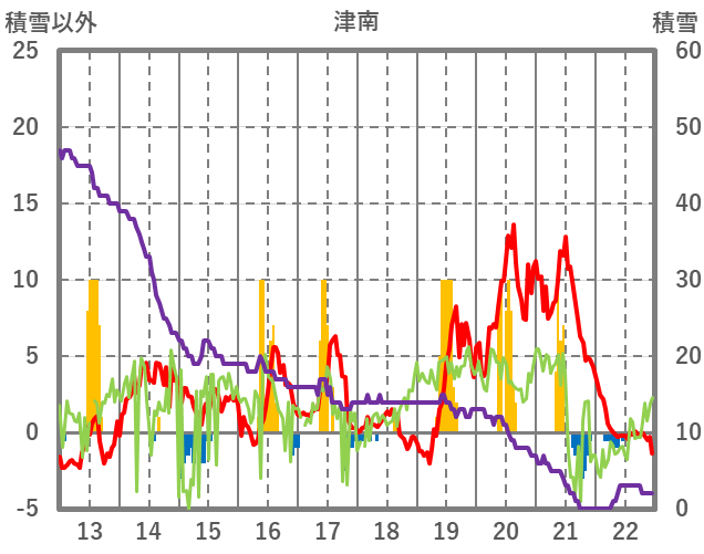 | 日 | 時 | 気温 | 降水 | 風向/風速 | 日照 | 積雪 | 降雪 |