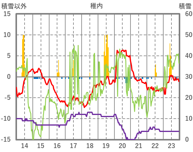 | 日 | 時 | 気温 | 降水 | 風向/風速 | 日照 | 積雪 | 降雪 |
