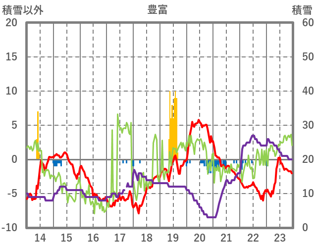 | 日 | 時 | 気温 | 降水 | 風向/風速 | 日照 | 積雪 | 降雪 |