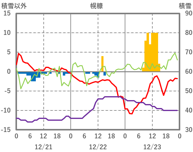 | 日 | 時 | 気温 | 降水 | 風向/風速 | 日照 | 積雪 | 降雪 |
