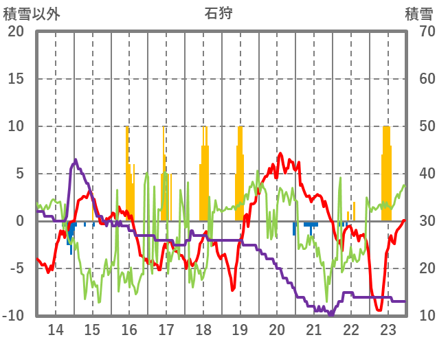 | 日 | 時 | 気温 | 降水 | 風向/風速 | 日照 | 積雪 | 降雪 |