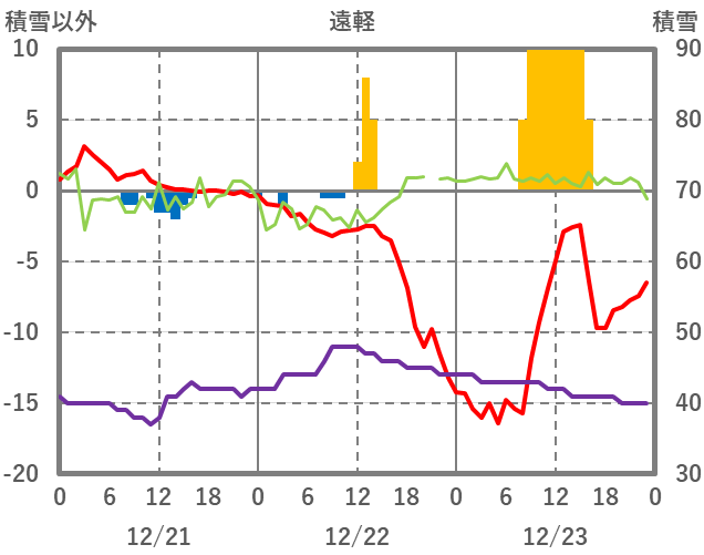 | 日 | 時 | 気温 | 降水 | 風向/風速 | 日照 | 積雪 | 降雪 |