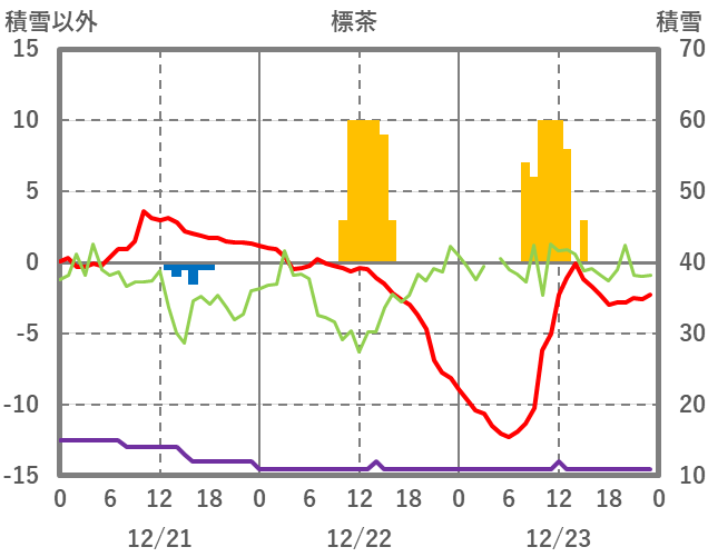 | 日 | 時 | 気温 | 降水 | 風向/風速 | 日照 | 積雪 | 降雪 |