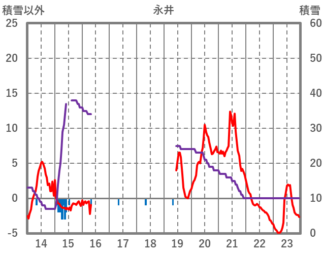 | 日 | 時 | 気温 | 降水 | 風向/風速 | 日照 | 積雪 | 降雪 |