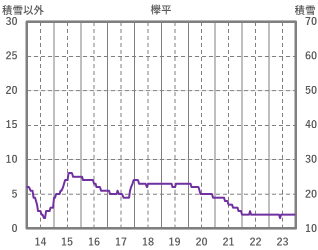| 日 | 時 | 気温 | 降水 | 風向/風速 | 日照 | 積雪 | 降雪 |