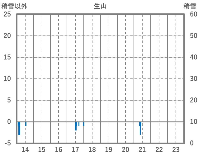 | 日 | 時 | 気温 | 降水 | 風向/風速 | 日照 | 積雪 | 降雪 |