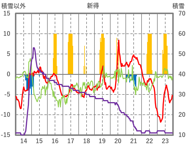 | 日 | 時 | 気温 | 降水 | 風向/風速 | 日照 | 積雪 | 降雪 |