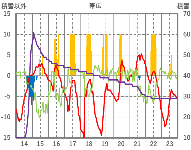 | 日 | 時 | 気温 | 降水 | 風向/風速 | 日照 | 積雪 | 降雪 |