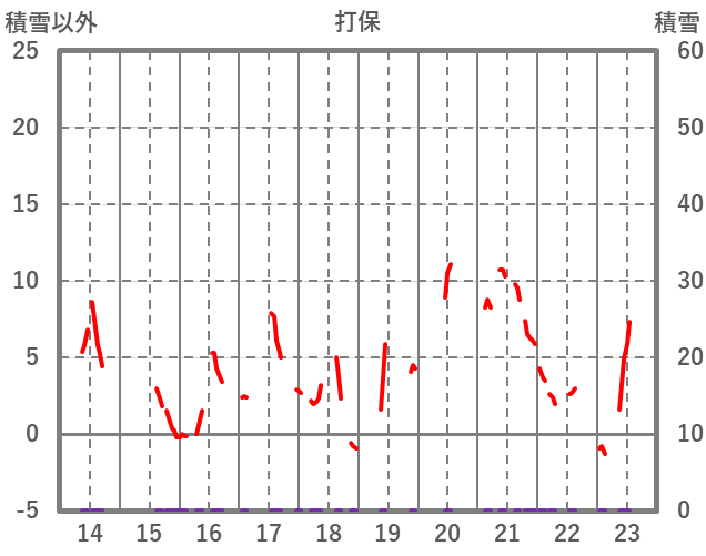 | 日 | 時 | 気温 | 降水 | 風向/風速 | 日照 | 積雪 | 降雪 |