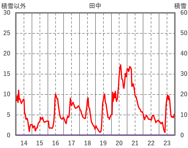 | 日 | 時 | 気温 | 降水 | 風向/風速 | 日照 | 積雪 | 降雪 |