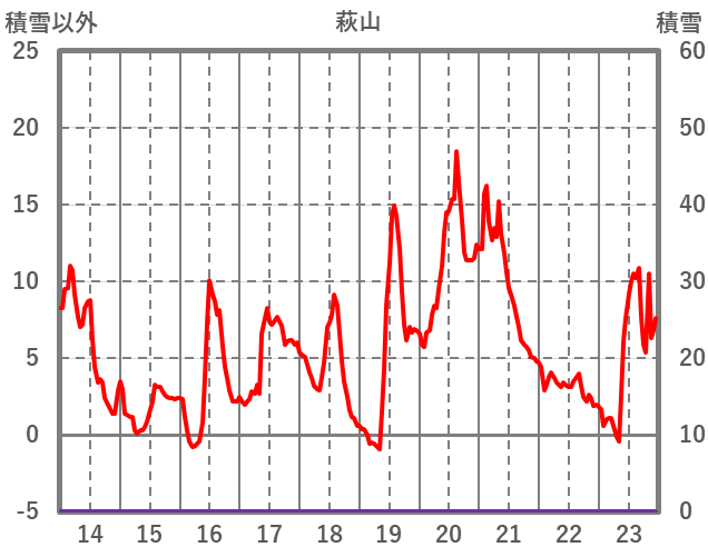 | 日 | 時 | 気温 | 降水 | 風向/風速 | 日照 | 積雪 | 降雪 |