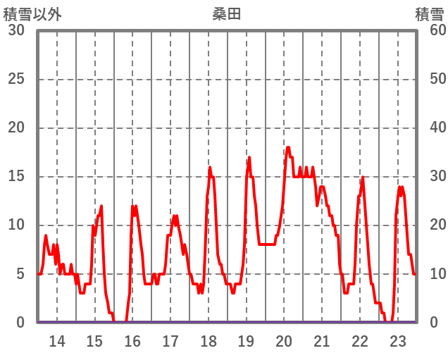 | 日 | 時 | 気温 | 降水 | 風向/風速 | 日照 | 積雪 | 降雪 |