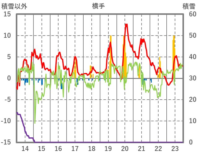 | 日 | 時 | 気温 | 降水 | 風向/風速 | 日照 | 積雪 | 降雪 |