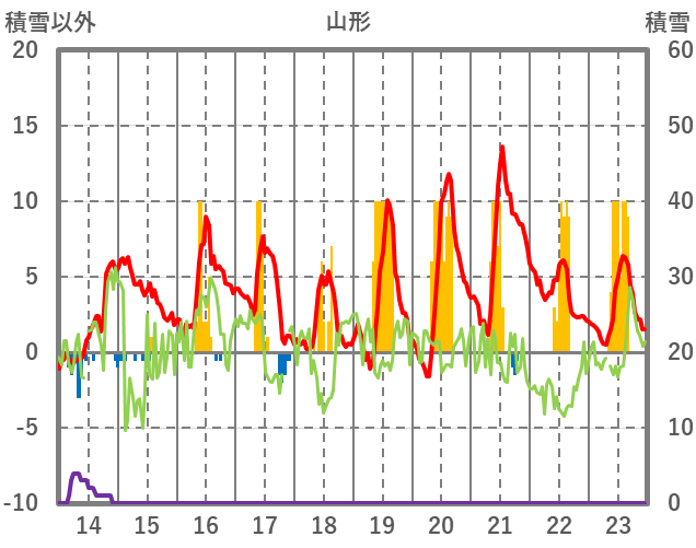 | 日 | 時 | 気温 | 降水 | 風向/風速 | 日照 | 積雪 | 降雪 |