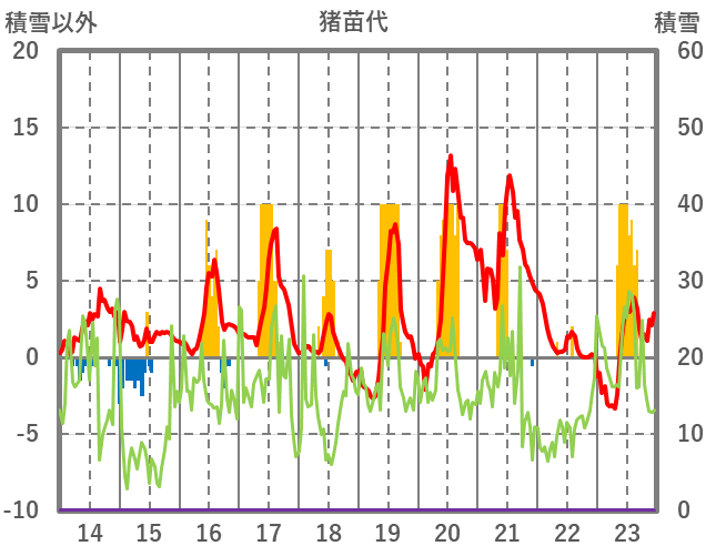 | 日 | 時 | 気温 | 降水 | 風向/風速 | 日照 | 積雪 | 降雪 |