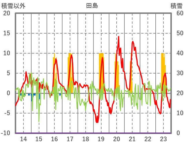| 日 | 時 | 気温 | 降水 | 風向/風速 | 日照 | 積雪 | 降雪 |