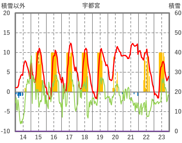 | 日 | 時 | 気温 | 降水 | 風向/風速 | 日照 | 積雪 | 降雪 |