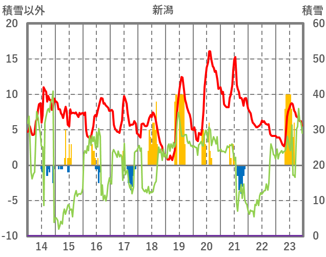 | 日 | 時 | 気温 | 降水 | 風向/風速 | 日照 | 積雪 | 降雪 |