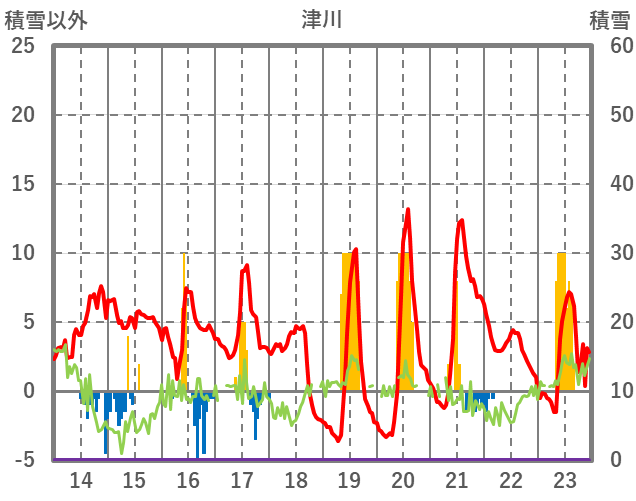 | 日 | 時 | 気温 | 降水 | 風向/風速 | 日照 | 積雪 | 降雪 |