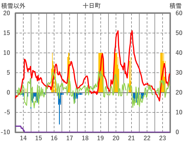 | 日 | 時 | 気温 | 降水 | 風向/風速 | 日照 | 積雪 | 降雪 |