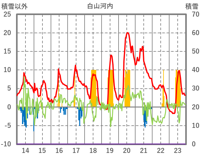 | 日 | 時 | 気温 | 降水 | 風向/風速 | 日照 | 積雪 | 降雪 |
