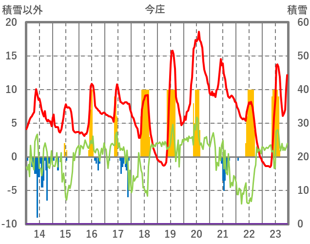 | 日 | 時 | 気温 | 降水 | 風向/風速 | 日照 | 積雪 | 降雪 |