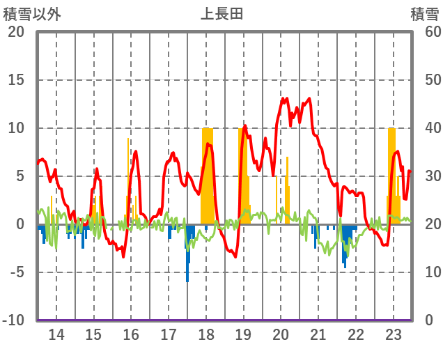 | 日 | 時 | 気温 | 降水 | 風向/風速 | 日照 | 積雪 | 降雪 |