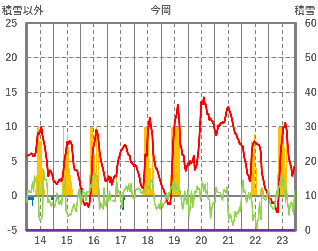 | 日 | 時 | 気温 | 降水 | 風向/風速 | 日照 | 積雪 | 降雪 |