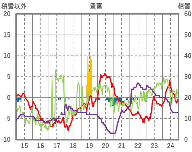 | 日 | 時 | 気温 | 降水 | 風向/風速 | 日照 | 積雪 | 降雪 |