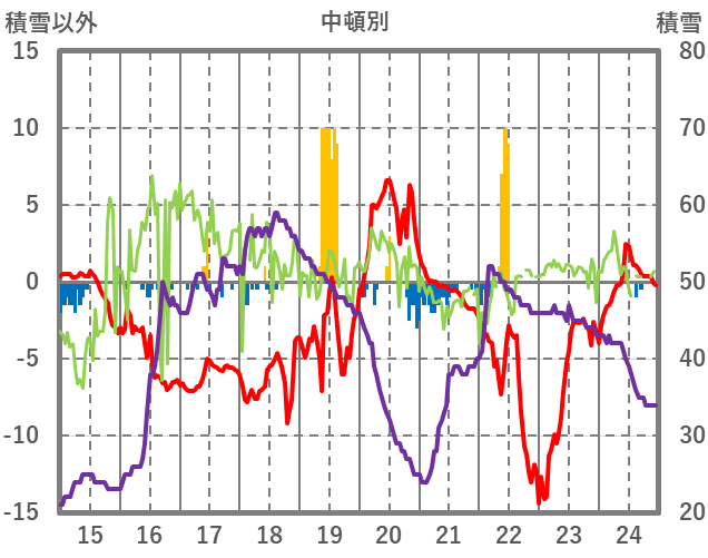 | 日 | 時 | 気温 | 降水 | 風向/風速 | 日照 | 積雪 | 降雪 |