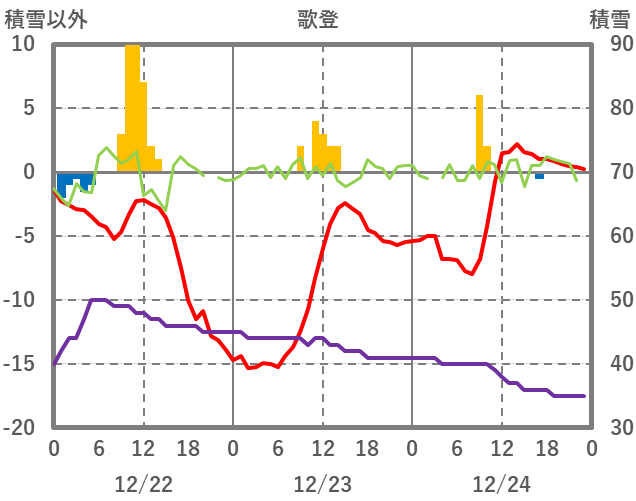 | 日 | 時 | 気温 | 降水 | 風向/風速 | 日照 | 積雪 | 降雪 |