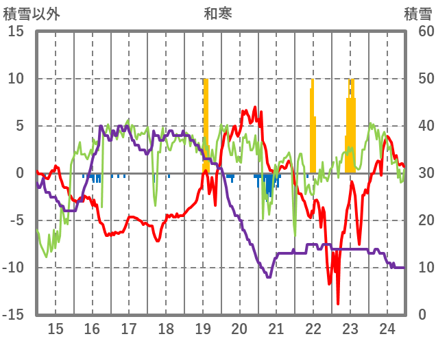 | 日 | 時 | 気温 | 降水 | 風向/風速 | 日照 | 積雪 | 降雪 |