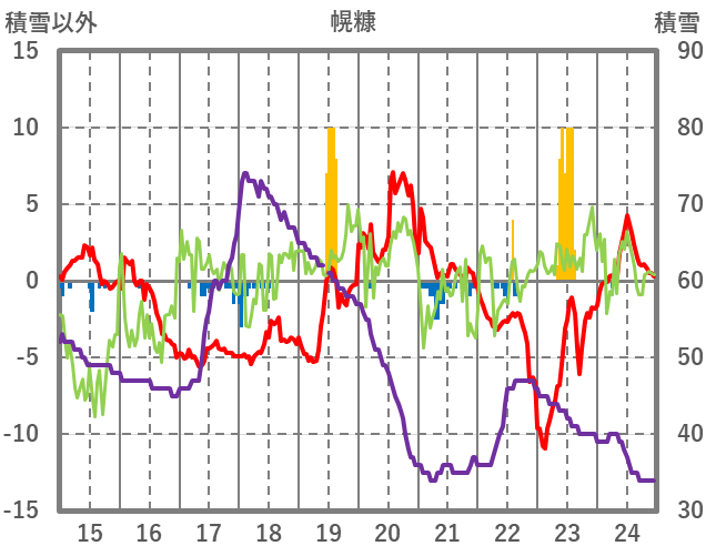 | 日 | 時 | 気温 | 降水 | 風向/風速 | 日照 | 積雪 | 降雪 |