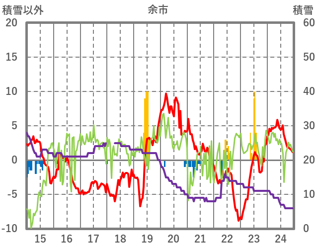 | 日 | 時 | 気温 | 降水 | 風向/風速 | 日照 | 積雪 | 降雪 |