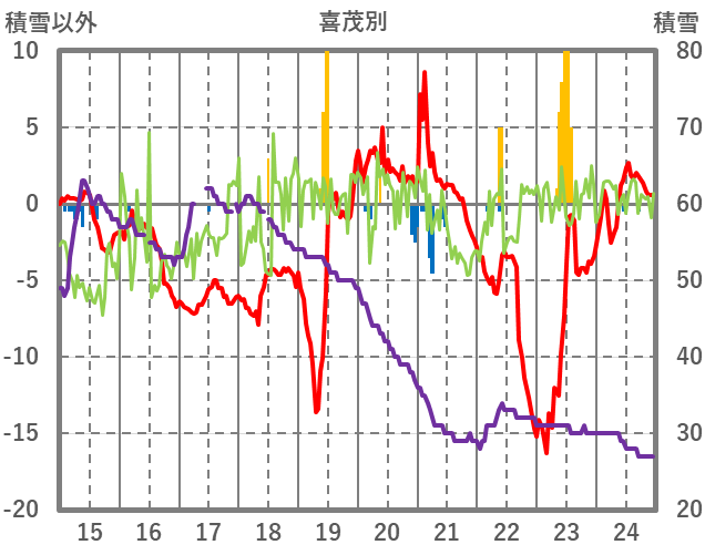 | 日 | 時 | 気温 | 降水 | 風向/風速 | 日照 | 積雪 | 降雪 |