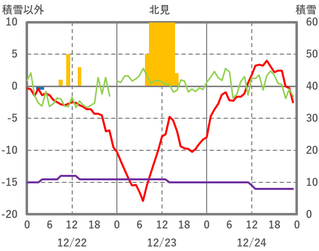 | 日 | 時 | 気温 | 降水 | 風向/風速 | 日照 | 積雪 | 降雪 |