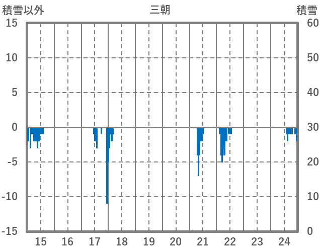 | 日 | 時 | 気温 | 降水 | 風向/風速 | 日照 | 積雪 | 降雪 |