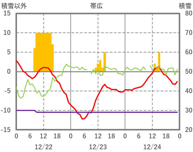 | 日 | 時 | 気温 | 降水 | 風向/風速 | 日照 | 積雪 | 降雪 |