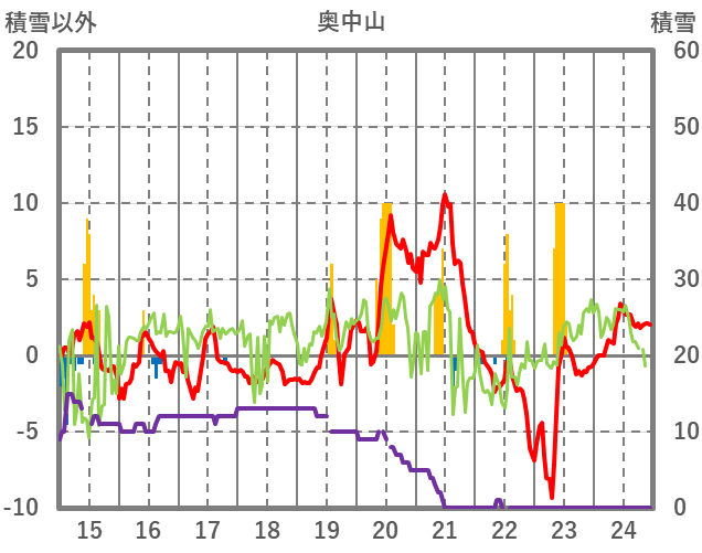 | 日 | 時 | 気温 | 降水 | 風向/風速 | 日照 | 積雪 | 降雪 |
