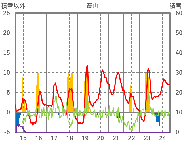 | 日 | 時 | 気温 | 降水 | 風向/風速 | 日照 | 積雪 | 降雪 |